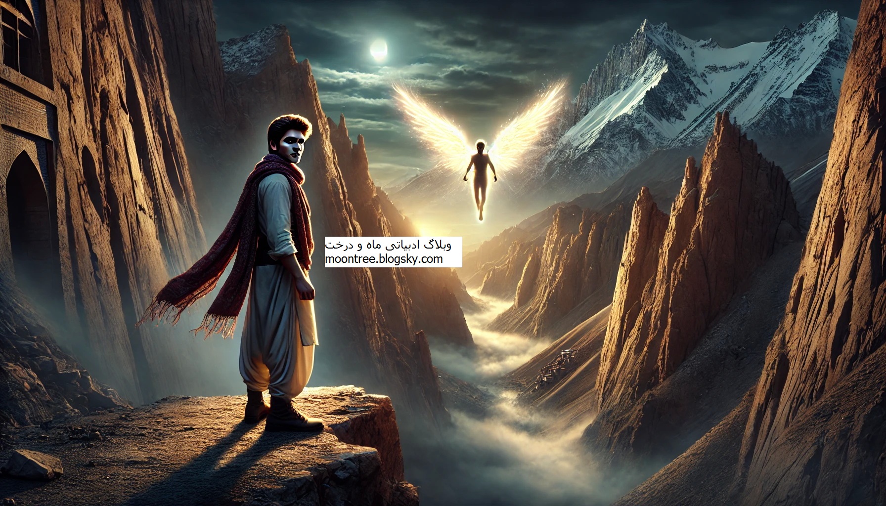 فرشته دستی به سوی پرتگاهی عمیق گرفت: «با مرگ روبرو شو! خود را به ژرفای این دره بسپار. اگر جانسپردن را پذیرفتی، تو را زنده خواهم کرد و آرزوهایت را براورده خواهم ساخت.»